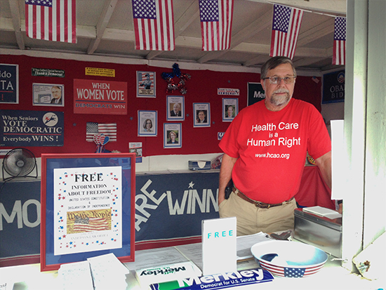 Dwight Dill, member of ORA Health Care Reform Action Team volunteers at the Fair Booth.