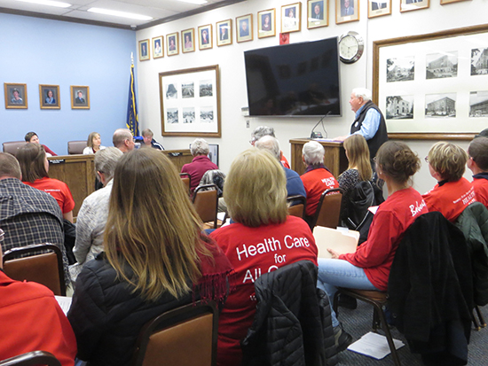 Supporters of Oregon Rural Action's Health Care Resolution filled the La Grande City Hall on January 10, 2018. They presented testimony and more than 260 signatures to Mayor Steve Clements and the City Council asking them to request Oregon Legislature bring universal health care to a vote of the people in 2020. The Council will discuss and vote on this request at their February meeting. Union County Democrats support this effort as stated in this plank of their platform: